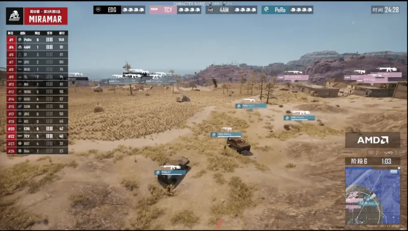 EDG选择与TCY交战,TCY先被淘汰随后4AM将EDG淘汰出局,成功吃下一鸡。